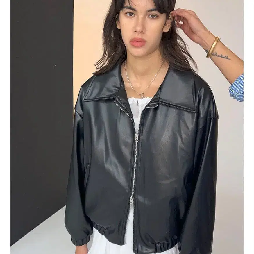 PLACESTUDIO 비건 레더 오버핏 블루종 [블랙] 합성 피혁 소재의 블랙 자켓으로, 지퍼 디테일이 있어 캐주얼한 스타일에 제격입니다. 지퍼를 잠가 허리까지 올려 입으면 벌룬 실루엣으로 귀여우면서도 다리가 길어 보이는 자켓입니다. - 색상: 블랙 - 소재: 합성 피혁 - 디자인: 지퍼, 벌룬 슬리브 - 스타일: 캐주얼 - 사이즈: 프리 사이즈 #PLACESTUDIO #인조가죽 #가죽자켓 #즉시구매가능 #블루종 #블랙자켓