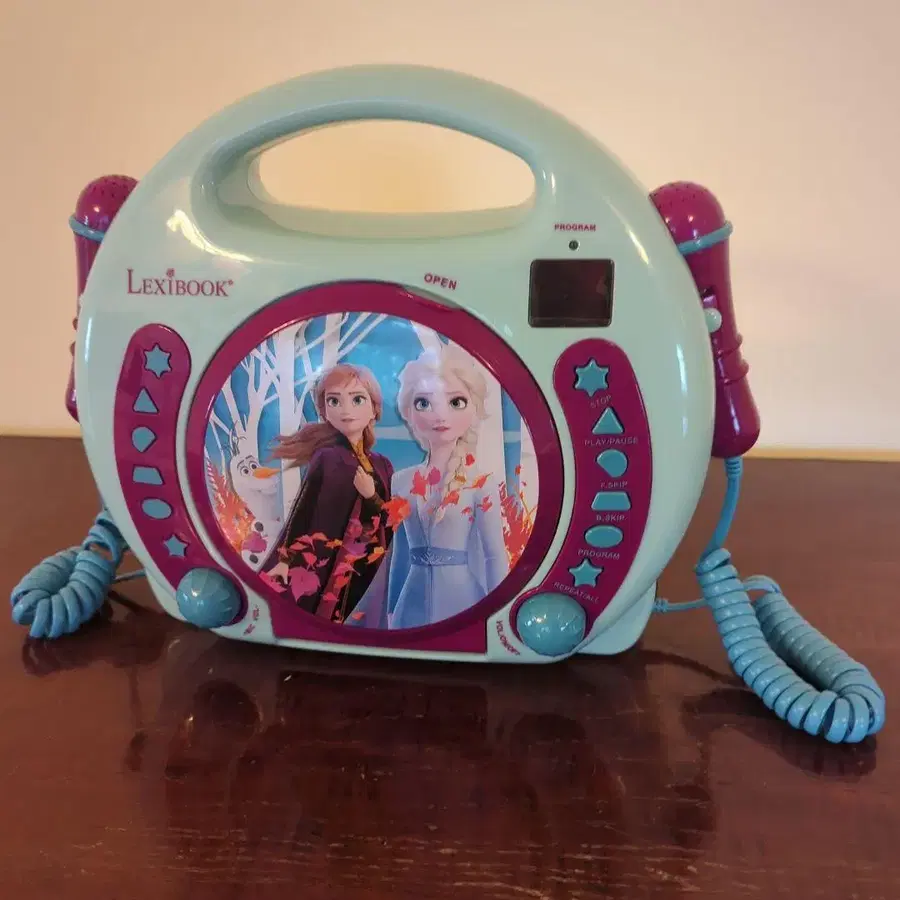 스카이블루 색상의 Frozen 디자인으로, 마이크와 CD 플레이어, CD 재생 기능이 탑재되어 있습니다. 겨울왕국, 엘사, 올라프. 작동 확인 완료했습니다. 약 반년 정도 사용했습니다. 배터리는 새것은 아니지만 그대로 넣어두겠습니다. 마이크는 원래 볼륨이 작게 설정되어 있습니다. - 브랜드: Lexibook - 캐릭터: Frozen - 타입: 가라오케 플레이어 - 색상: 스카이블루 - 기능: CD 플레이어 3세, 4세, 5세. 크리스마스 선물 등으로 추천합니다. 방문해 주셔서 감사합니다.