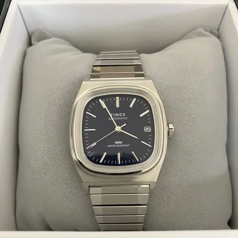구매 후 10회 정도 사용했습니다. 눈에 띄는 흠집이나 얼룩 없이 깨끗한 상태입니다. 새상품급이라고 생각합니다. 네이비 다이얼과 스테인리스 스틸 자동 시계. 아래 공식 사이트 내용 심플해 보이지만 사실은 섬세한 디자인의 케이스는 현재 전 세계적으로 트렌드가 되고 있는 소형 34mm 사이즈이며, 팔찌는 공구 없이 조정 가능한 신축성 있는 밴드 타입을 채용했습니다. 우연히도 80년대 버블기 패션과 아이템들이 다시 주목받는 지금, 이러한 아카이브 모델을 현대적인 무브먼트(일본제)와 외장으로 즐길 수 있다는 점이 기쁩니다. - 브랜드: TIMEX - 색상: 네이비 - 소재: 스테인리스 스틸 - 기능: 자동 - 사이즈: 케이스 사이즈 약 34mm 방문해 주셔서 감사합니다. 다이얼 컬러 - 네이비 벨트 컬러 - 실버 부속품 - 상자, 책자 어떠한 이유로도 반품 및 환불은 불가합니다.