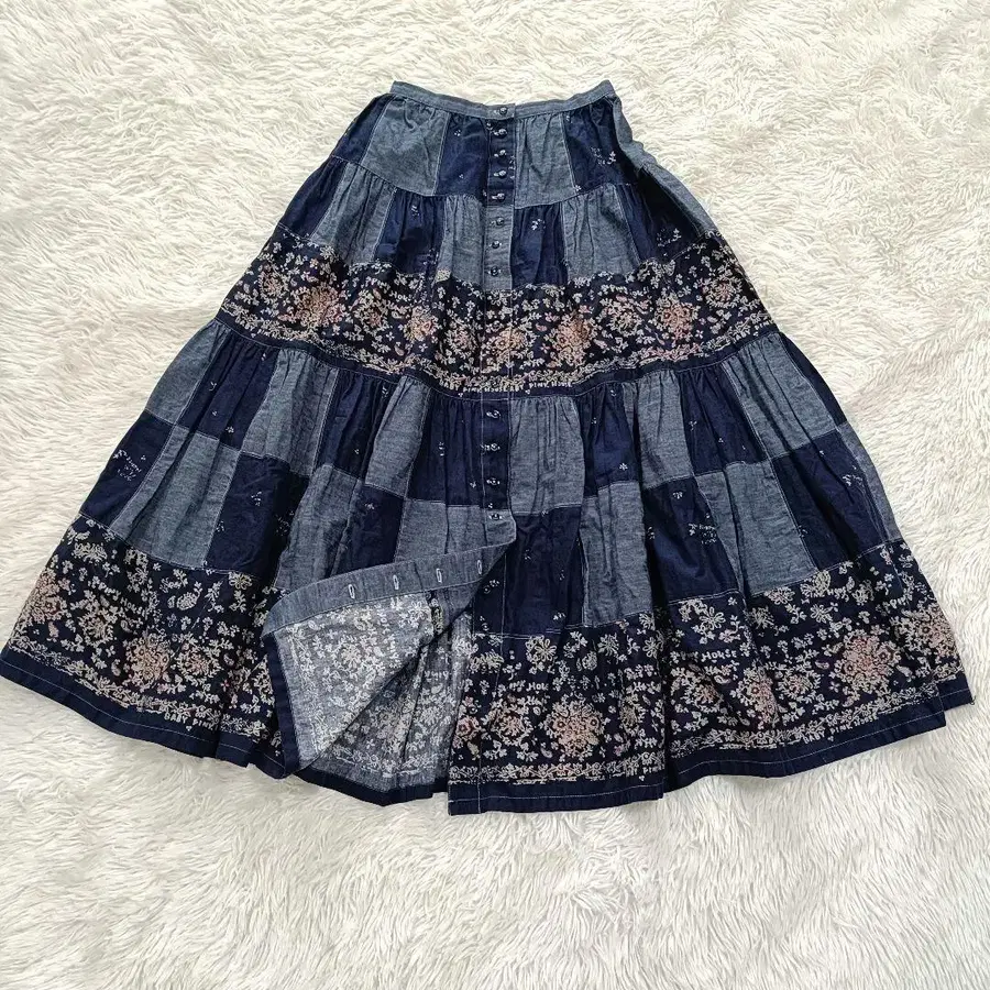 • 패치워크 디자인 무릎 아래 스커트 미사용 새상품