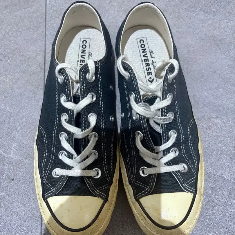CONVERSE의 블랙 스니커즈, 레이스업 디자인과 고무 밑창. - 브랜드: CONVERSE - 색상: 블랙 - 스타일: 스니커즈 - 밑창 소재: 고무 - 디자인: 레이스업 방문해 주셔서 감사합니다.