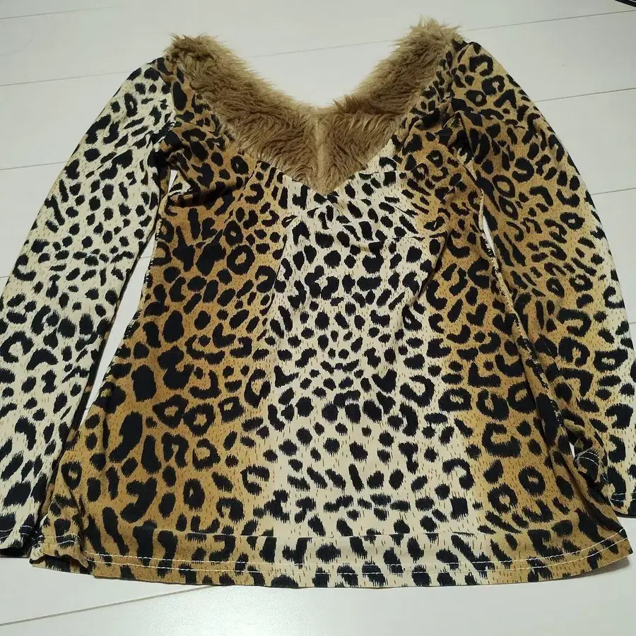 V넥 레오파드 무늬 퍼 상의 M 그런지 Y2K 헤이세이 00s 갸루