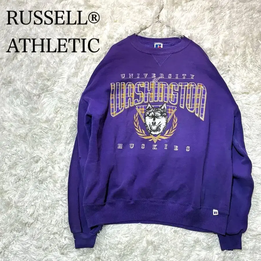 퍼플 색상의 UNIVERSITY WASHINGTON HUSKIES 디자인이 인상적인 트레이닝복.