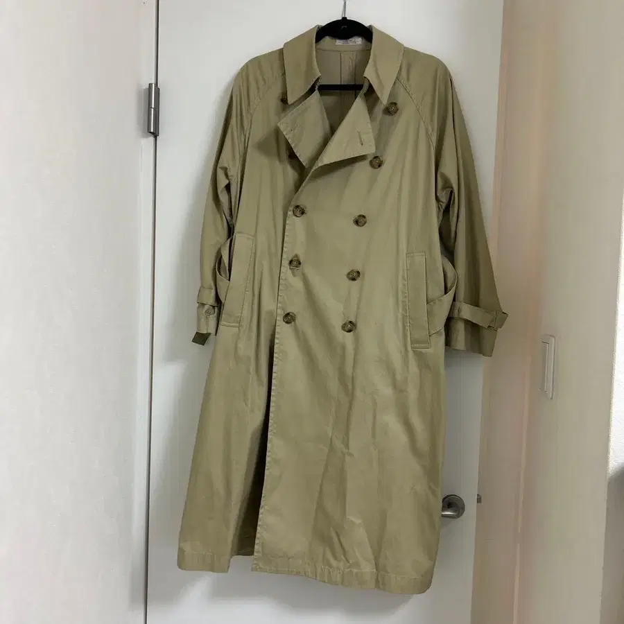 더블 브레스트 베이지 트렌치코트, 버튼과 소매 벨트 포함. - 색상: 베이지 - 스타일: 트렌치코트 - 특징: 더블 브레스트, 버튼 포함, 소매 벨트 방문해 주셔서 감사합니다. 롱 기장입니다. 스타일리시하며 겉옷으로도 귀엽게 연출 가능합니다. 옷장에 걸어두기만 했습니다. 매우 깨끗합니다! 입학식이나 졸업식에도 입고 갈 수 있습니다.