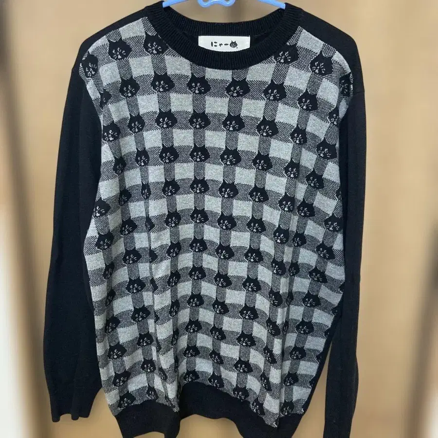 냐옹 고양이 패턴 스웨터 사이즈 3 블랙/그레이