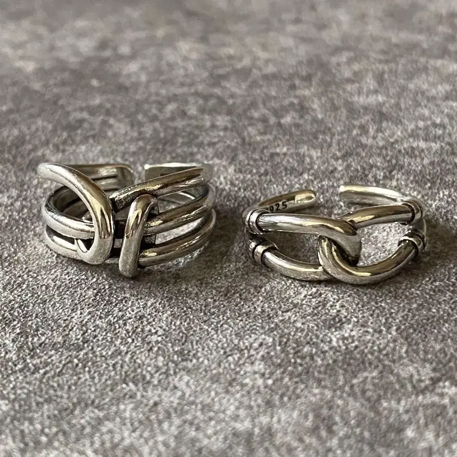 멕시칸 주얼리 실버 925 곡선 변형 반지 디자인 심플