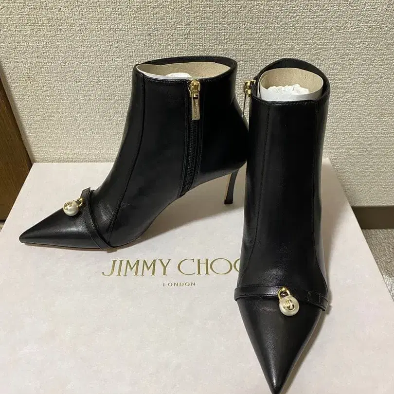 세련된 디자인의 블랙 부티, 힐 포함, 사이즈 36. JC 펄 장식이 있습니다 ✨ - 브랜드: JIMMY CHOO - 색상: 블랙 - 스타일: 부티, 숏부츠 - 사이즈: 36 - 힐: 7.5cm 한 번도 신지 않은 새 상품이지만, 매장 시착 시 생긴 얼룩이 바닥 안쪽에 약간 있습니다. 사진으로 확인해 주세요.