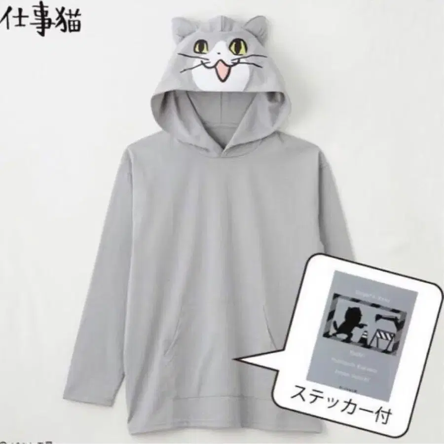 일하는 고양이 후드티 긴팔 스티커 포함 현장 고양이 요시! 새상품