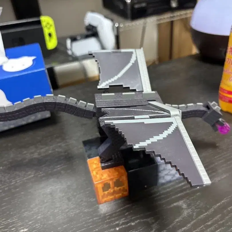 마인크래프트 피규어와 블록입니다. 낱개 판매는 생각하고 있지 않습니다. 엔더 드래곤 높이 7cm 가로, 날개를 펼친 상태로 26cm 세로, 머리 끝부터 꼬리까지 28cm 입니다.