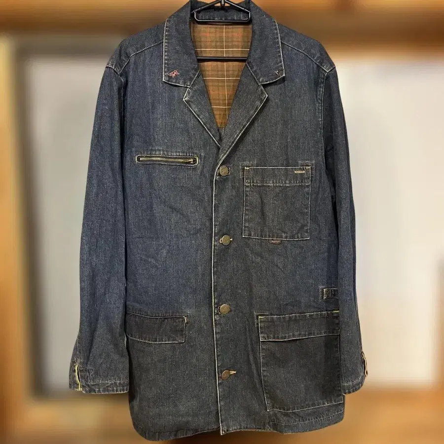 인디고 size L 기장 약 78cm 가슴 너비 약 53cm 어깨 너비 약 46cm 소매 길이 약 63cm 체인지 버튼. 눈에 띄는 큰 데미지는 없습니다.