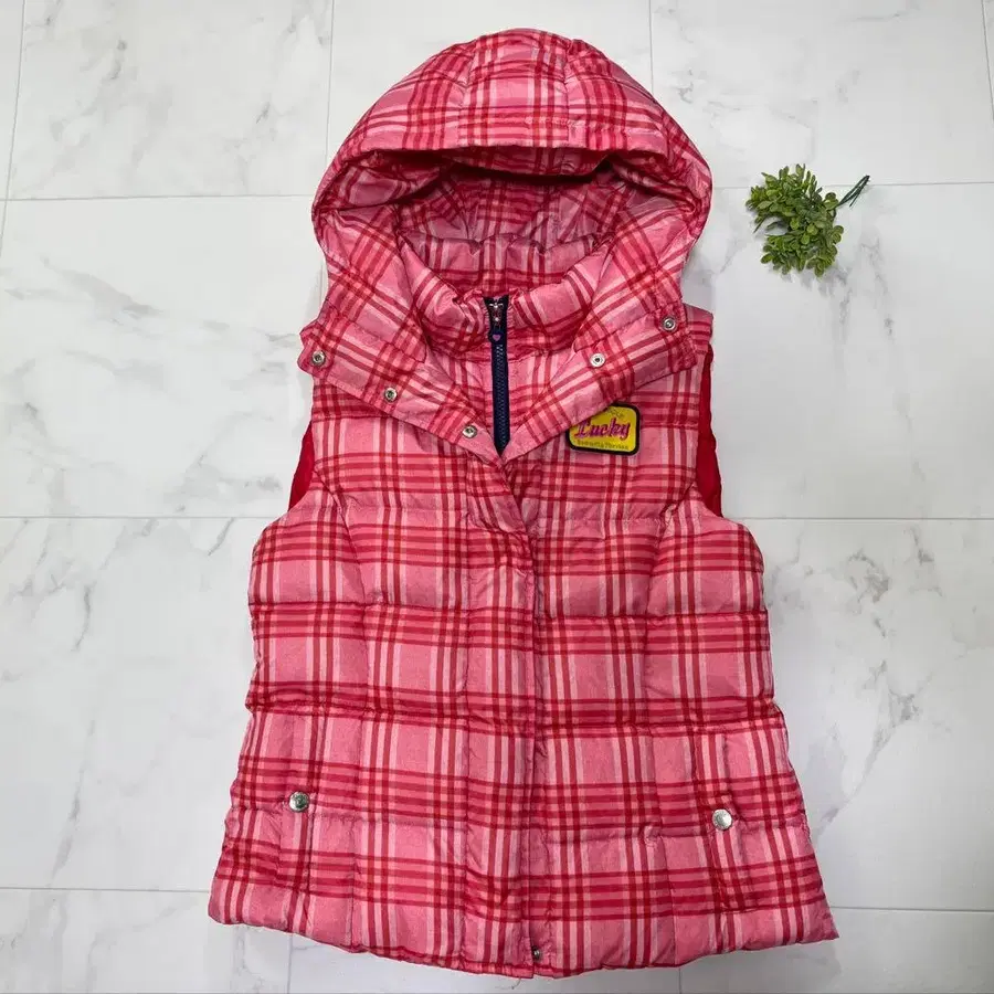 M 사만다 타바사 골프 No.7 다운 베스트 체크 무늬 골프 핑크 빨간색
