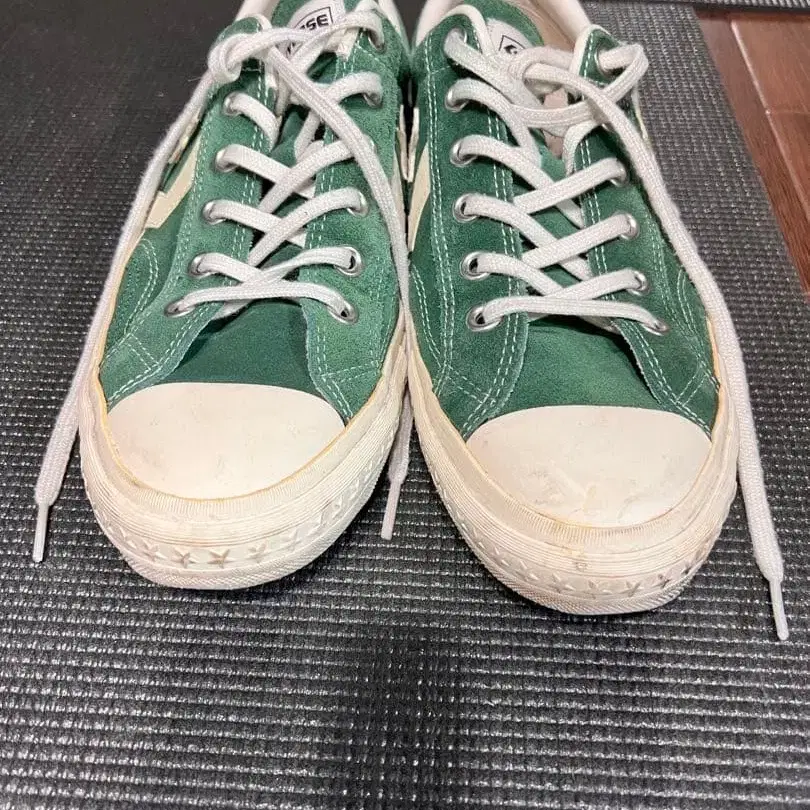 스웨이드 소재의 그린 컬러 스니커즈 사이즈가 맞지 않아 판매합니다. 아직 신으실 수 있습니다! 상자는 부속되지 않습니다. - 색상: 그린 - 디자인: 스웨이드 소재 - 특징: 별 로고 - 밑창 색상: 화이트 - 스타일: 로우컷 방문해 주셔서 감사합니다.