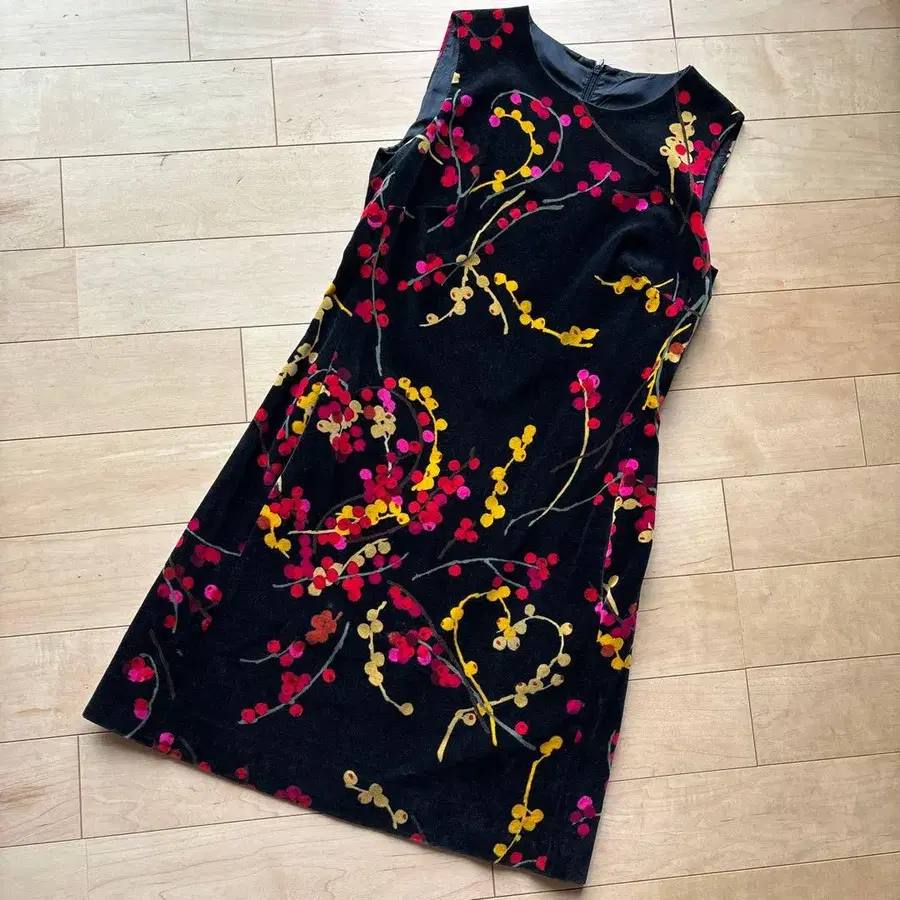 MOSCHINO CHEAP AND CHIC 원피스 Moschino Cheap and Chic 빈티지 90년대 모스키노 치프 앤 시크의 매화 꽃무늬 원피스입니다. 90년대 빈티지 원피스 벨벳 소재로 블랙 터틀 니트와 함께 입었습니다. 가을 겨울용 뒷지퍼 이탈리아제 사이즈: 이탈리아 40 (일본 M) * 아래 실측치수를 참조해 주세요. 평평하게 놓았을 때의 대략적인 사이즈입니다. 어깨 너비: 약 35cm 가슴 너비: 약 40cm 총길이: 약 86cm vintage 90's MOSCHINO cheap&chic made in italy brocade dress 세월에 따른 자택 보관 유즈드 제품이므로, 이해해 주시는 분의 구매를 부탁드립니다. - 색상: 블랙과 꽃무늬 디자인 - 스타일: 슬리브리스 - 소재: 벨벳 느낌의 원단 - 디자인: 컬러풀한 꽃무늬가 장식됨 - 실루엣: 타이트 핏 방문해 주셔서 감사합니다.