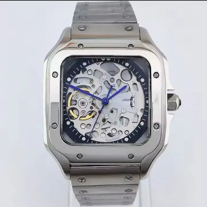 스테인리스 스틸 소재의 자동 와인딩 시계, 실버 다이얼과 파란색 바늘이 특징입니다. - 모델: 자동 와인딩 시계 - 케이스 소재: 스테인리스 스틸 - 다이얼 색상: 실버 - 밴드 소재: 스테인리스 스틸 - 바늘 색상: 파랑 - 뒷면 디자인: 무지 - 모양: 스퀘어 방문해 주셔서 감사합니다.