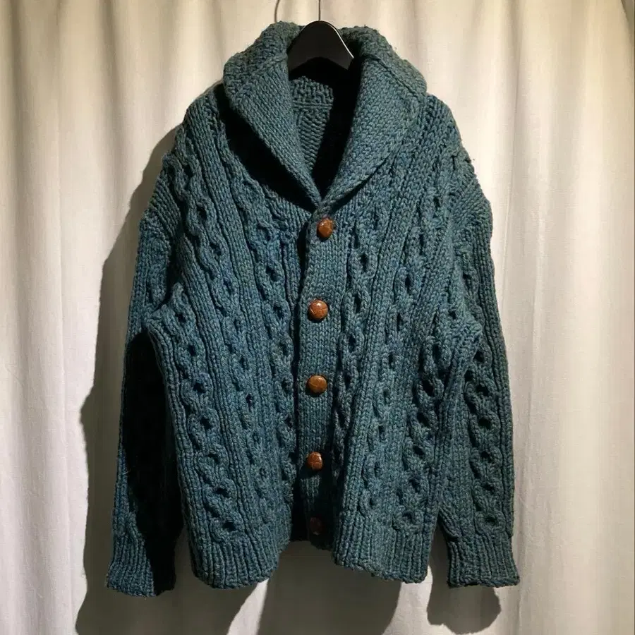 • 빈티지 핸드메이드 피셔맨 니트 아란 니트 케이블 짜임 L