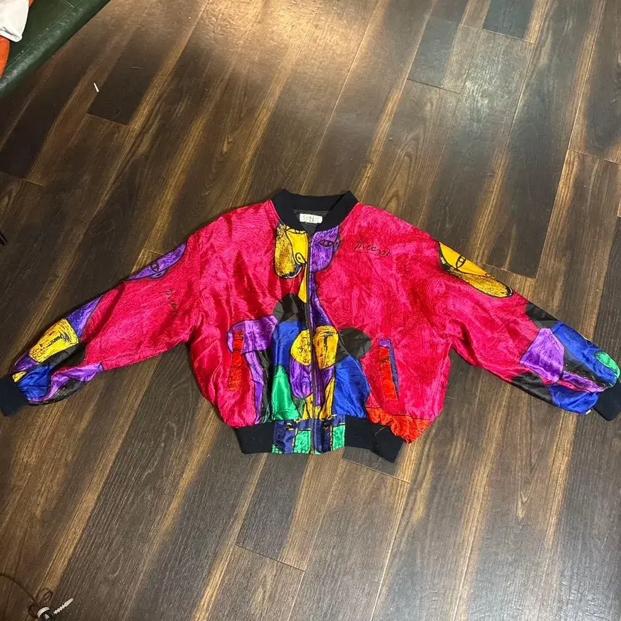 피카소풍 아트 프린트가 특징인 컬러풀한 나일론 자켓. - 색상: 빨간색, 보라색, 옐로우 컬러, 그린 - 디자인: 피카소풍 아트 프린트 - 브랜드: Jean Paul Gaultier 방문해 주셔서 감사합니다. 어깨 너비/가슴 너비/소매 길이/기장 어깨 너비 - 56cm 가슴 너비 - 66cm 소매 길이 - 57cm 기장 - 65cm 소재 - 나일론