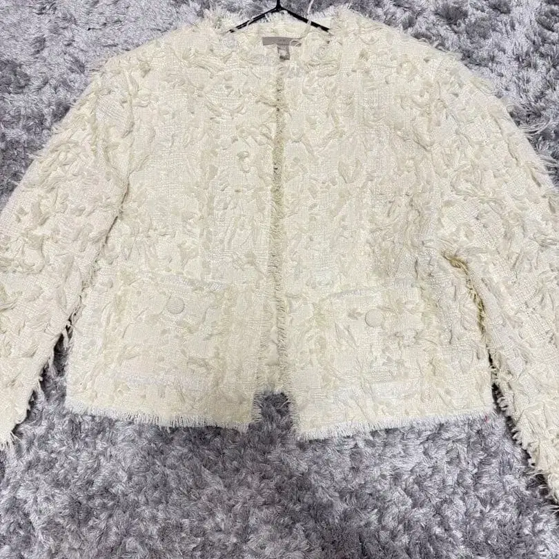 H&M 노카라 자켓 화이트 프린지 트위드 디자인 M 사이즈