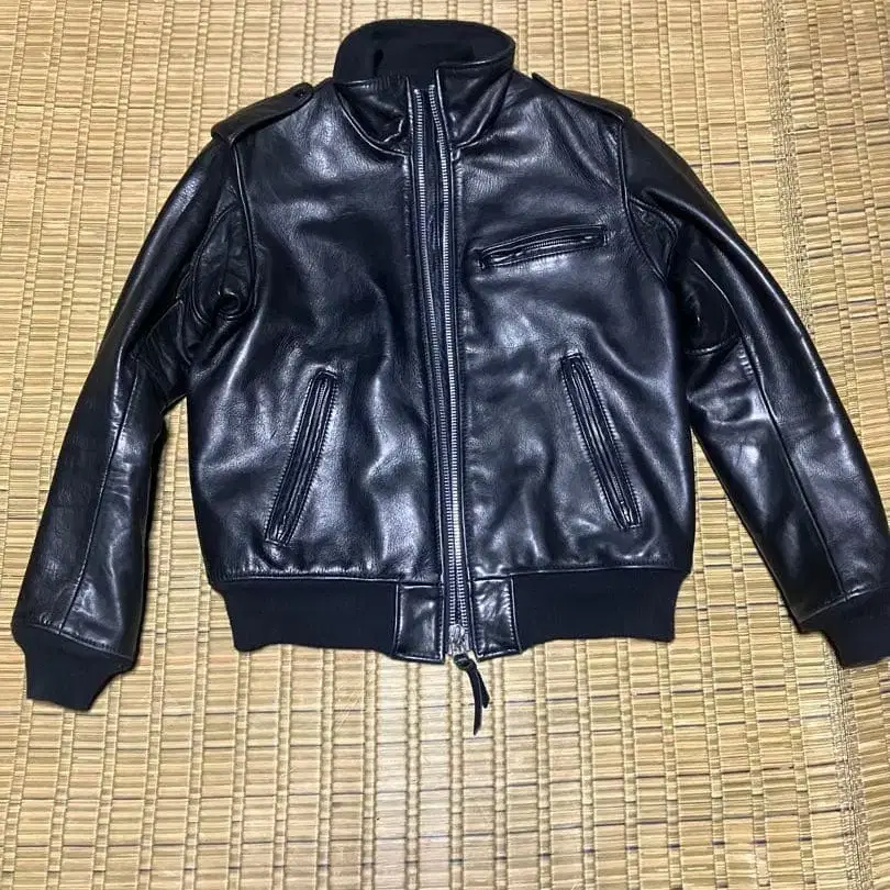 AVIREX 블랙 가죽 아우터 지퍼 포함