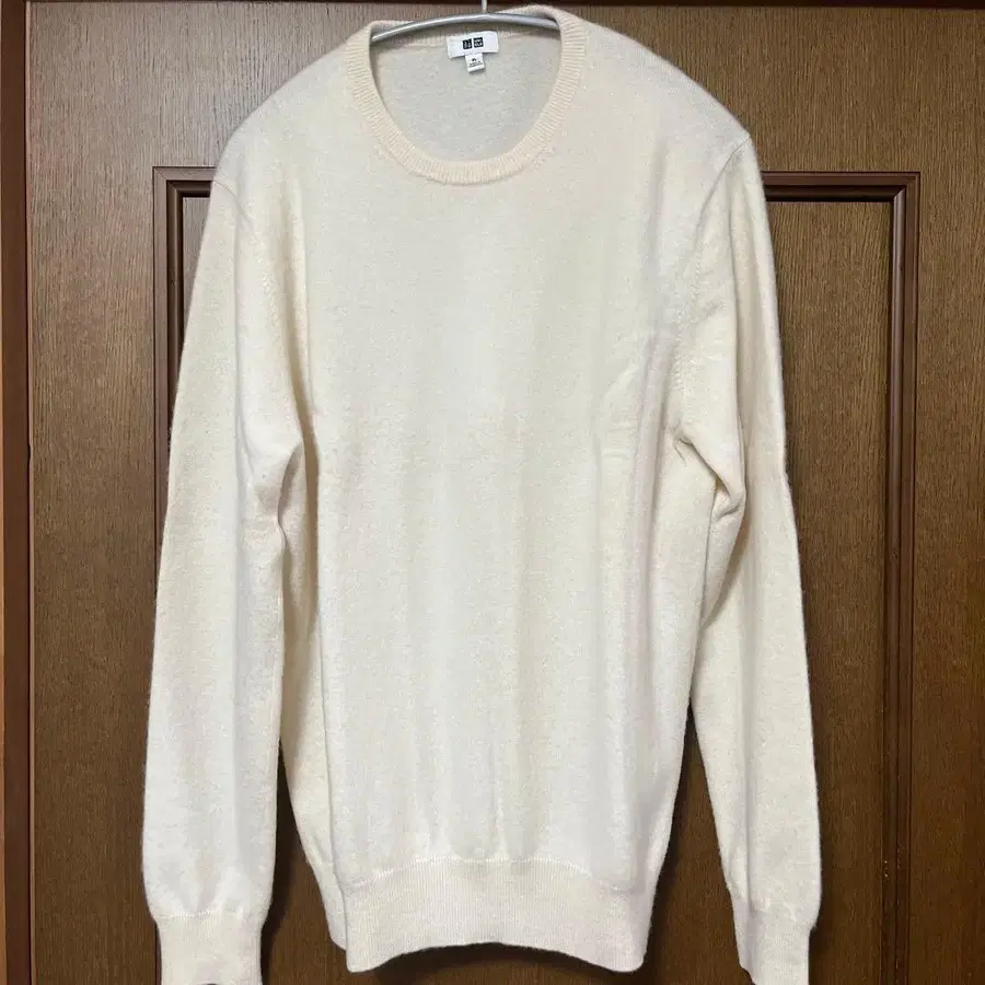 • UNIQLO 캐시미어 100% 아이보리 크루넥 긴팔 니트 XL