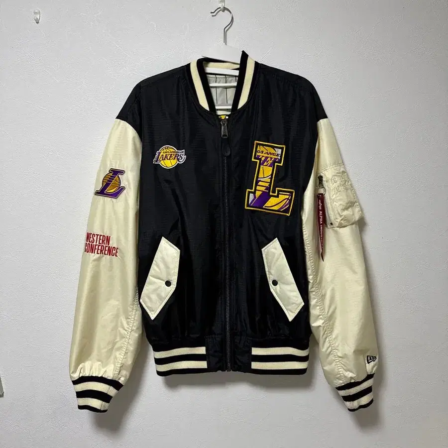 Alpha Industries x NBA x New Era 콜라보 레이커스 바시티 자켓입니다. M 사이즈입니다. 사이즈(평평하게 놓았을 때 치수) 기장 70cm 가슴 너비 55cm 어깨 너비 50cm 소매 길이 70cm