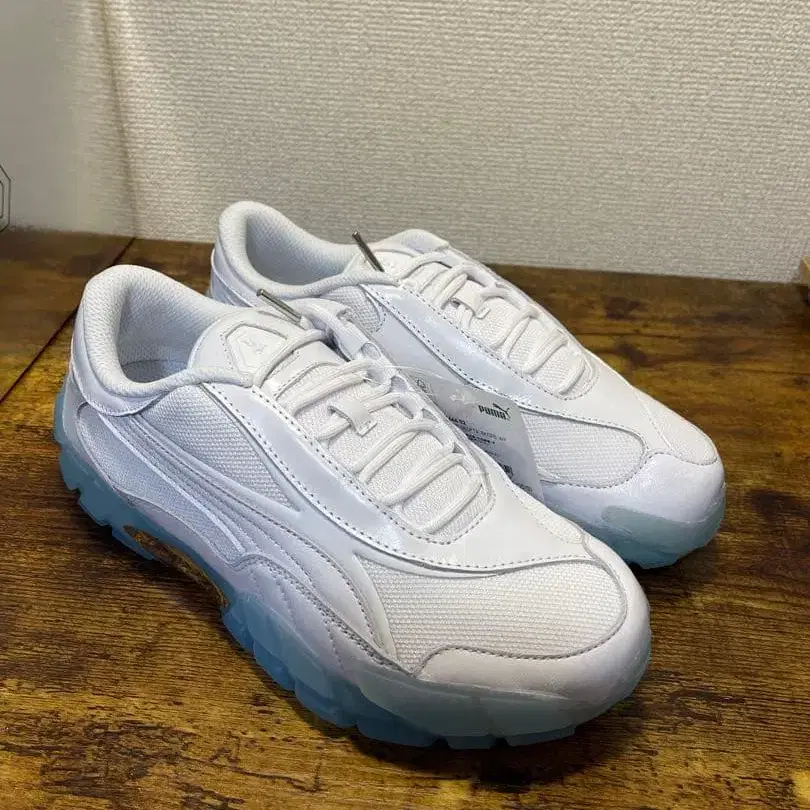 화이트 클리어 솔 스니커즈, 택 포함 새상품. - 브랜드: Puma - 색상: 화이트 - 스타일: 스니커즈 - 밑창: 클리어 솔 - 택: 택 포함 새상품 방문해 주셔서 감사합니다.