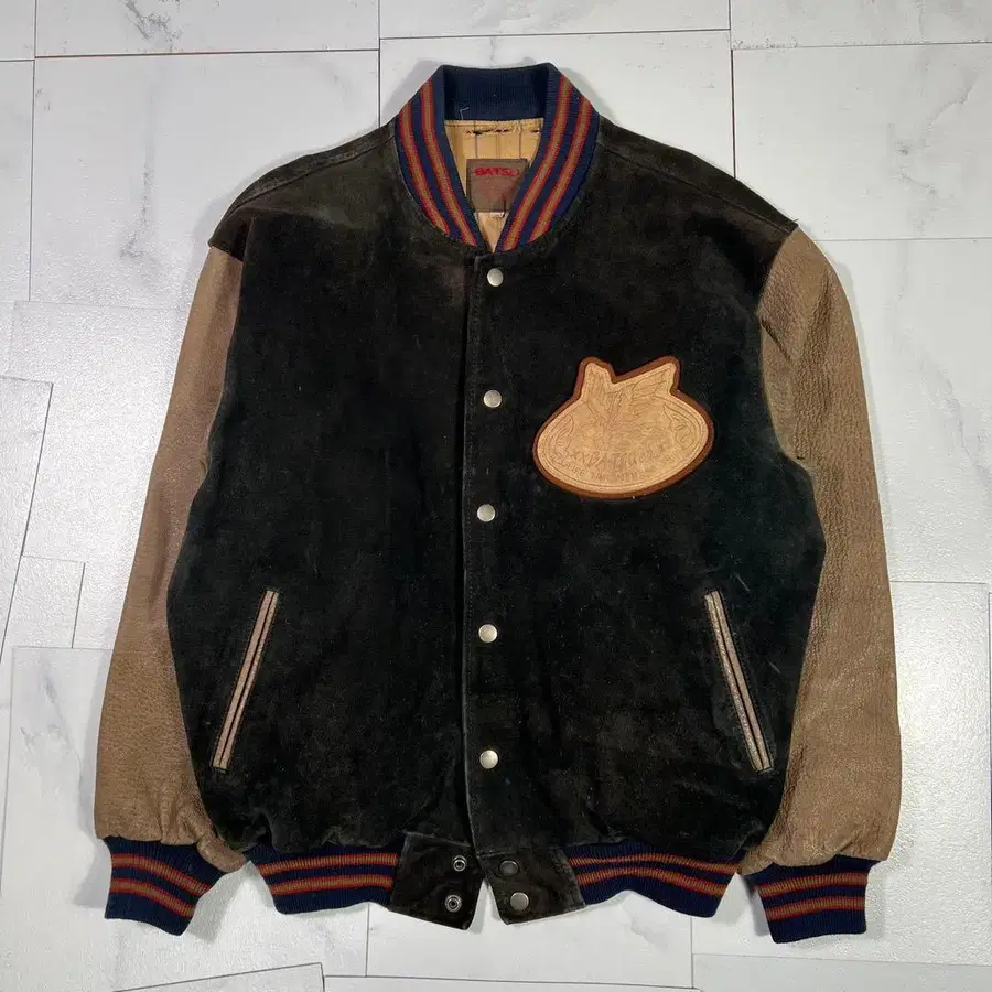 90'S MEN'S BA-TSU 맨즈바츠 바시티 자켓 소매 가죽 소가죽 M