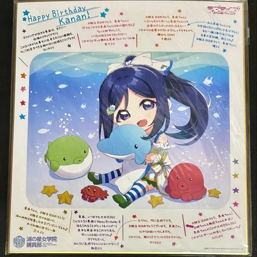 러브 라이브! 선샤인!! 우라노호시 여학원 구매부 BIRTHDAY 색지 마츠우라 카난 미개봉 사이즈: 약 24cm x 27cm #요츠하 혜택 쿠로사와 루비, 쿠니키다 하나마루, 츠시마 요시코 타카미 치카, 사쿠라우치 리코, 와타나베 요우 Aqours 쿠로사와 다이아, 마츠우라 카난, 오하라 마리