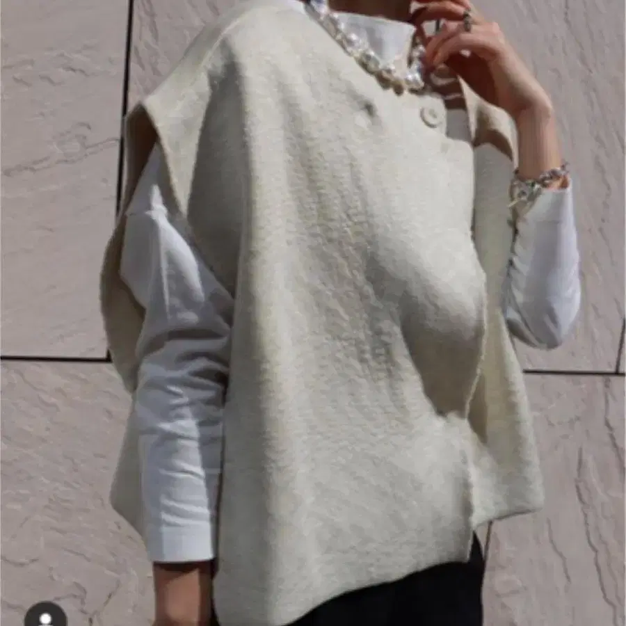 자카드 직물이 고급스러움과 표정을 더하는 니트 베스트.