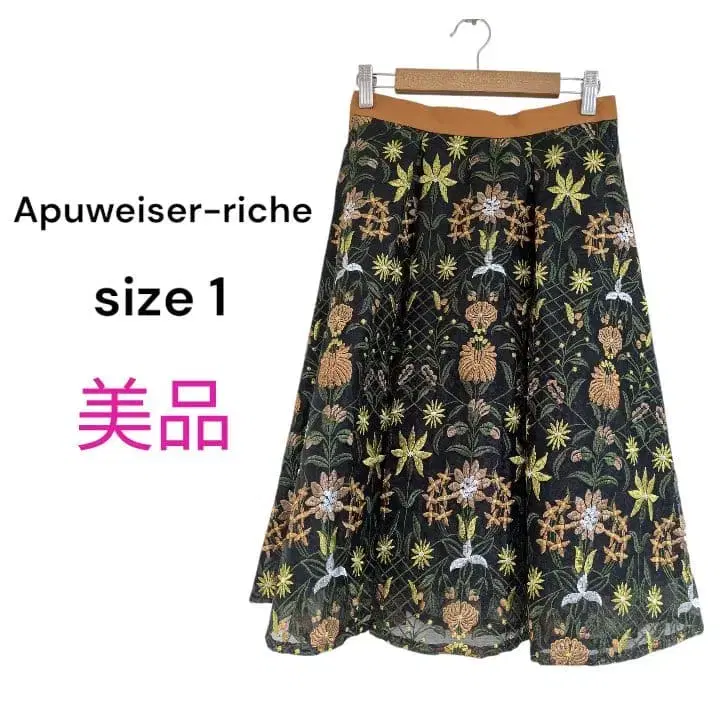 [ 새상품급 ] 아푸와이저 리셰 꽃무늬 자수 플레어 스커트 플라워 스커트