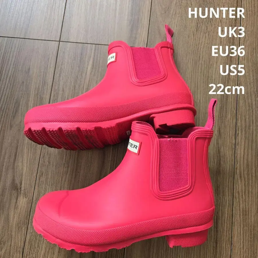 [ HUNTER ] 핑크 엘라스틱사이드 숏부츠 레인부츠