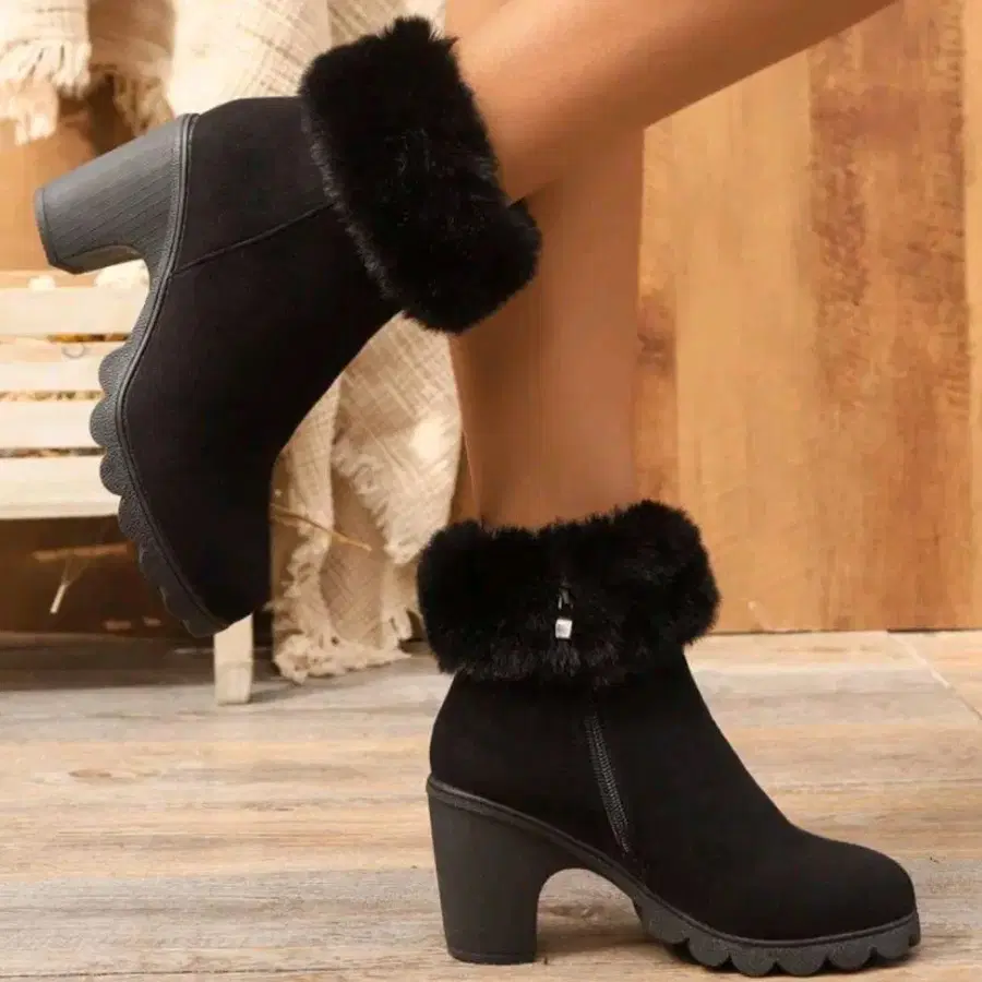 • 스티치 블랙 퍼 여성용 겨울 부츠 M 사이즈 미사용 새상품