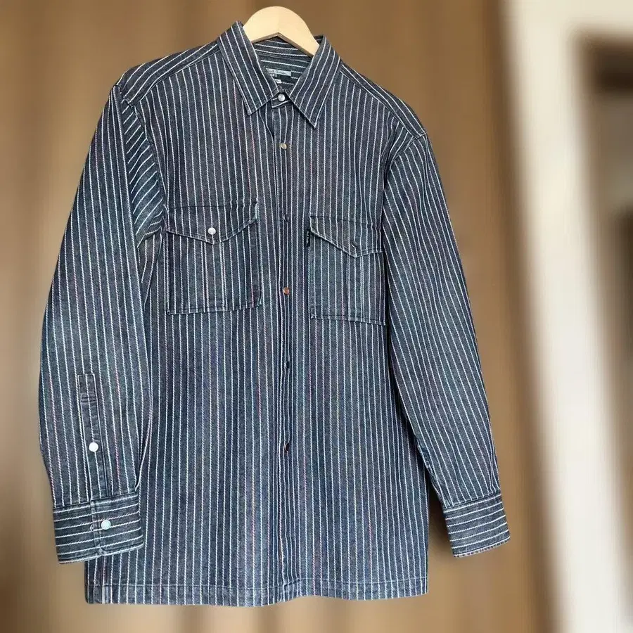 스트라이프 패턴의 데님 셔츠, 프론트 포켓 부착. - 브랜드: Paul Smith Jeans - 사이즈: L - 디자인: 스트라이프 패턴 - 포켓: 프론트 포켓 2개 - 소재: 데님 방문해 주셔서 감사합니다.