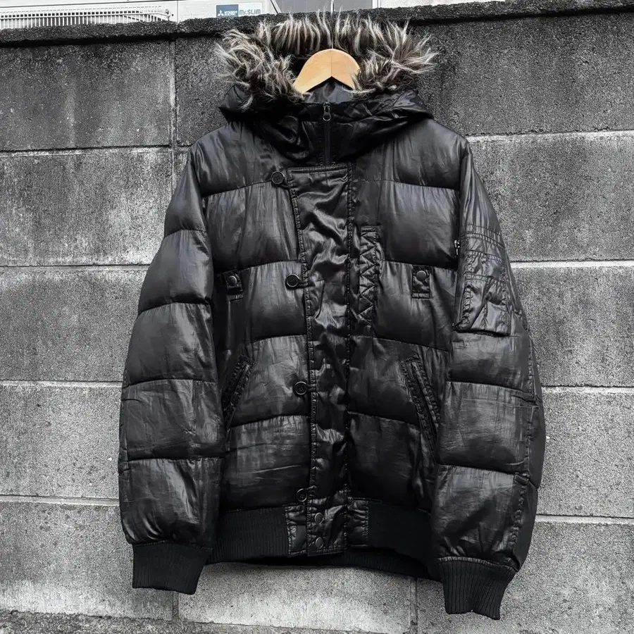 00s Y2K 충전솜 퍼 자켓 시크 스타일 블랙 L A.S.M