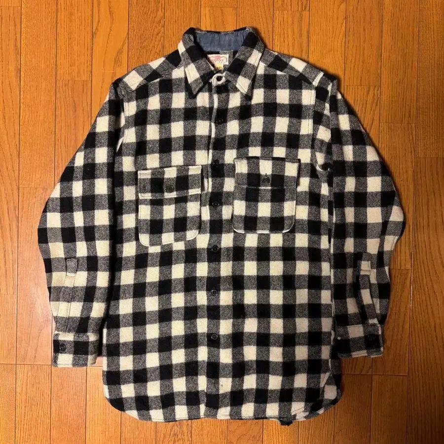 40s 50s BRENT 버팔로 체크 셔츠 밴드 포함