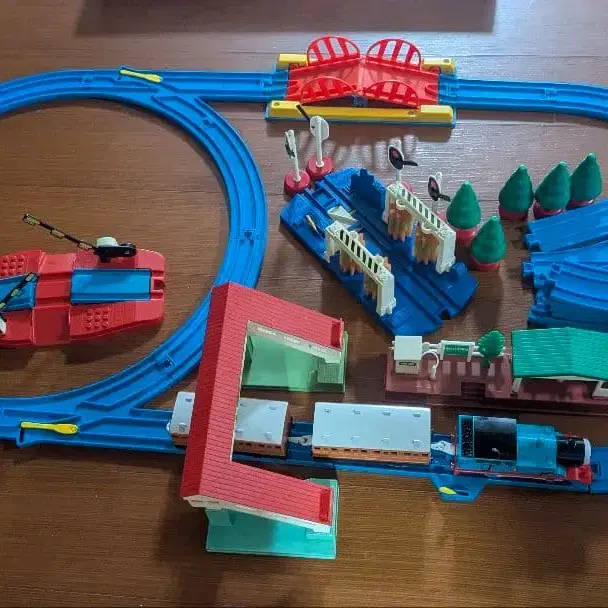 다양한 액세서리가 포함된 프라레일 세트로, 토마스와 함께 즐거운 철도 놀이를 즐길 수 있습니다. - 세트 내용: 프라레일 트랙, 터널, 다리, 나무, 역, 차량 (토마스) - 차량명: 토마스 - 트랙 색상: 파랑 - 액세서리: 신호기, 나무, 역 - 터널: 그린 터널 - 화차: 브라운 화차 방문해 주셔서 감사합니다. 어릴 때 가지고 놀던 물건입니다. 토마스에는 TOMMY제 1992년 각인이 있었습니다. 신문지로 어느 정도 개별 포장하여 종이상자로 발송하겠습니다. 잘 부탁드립니다.
