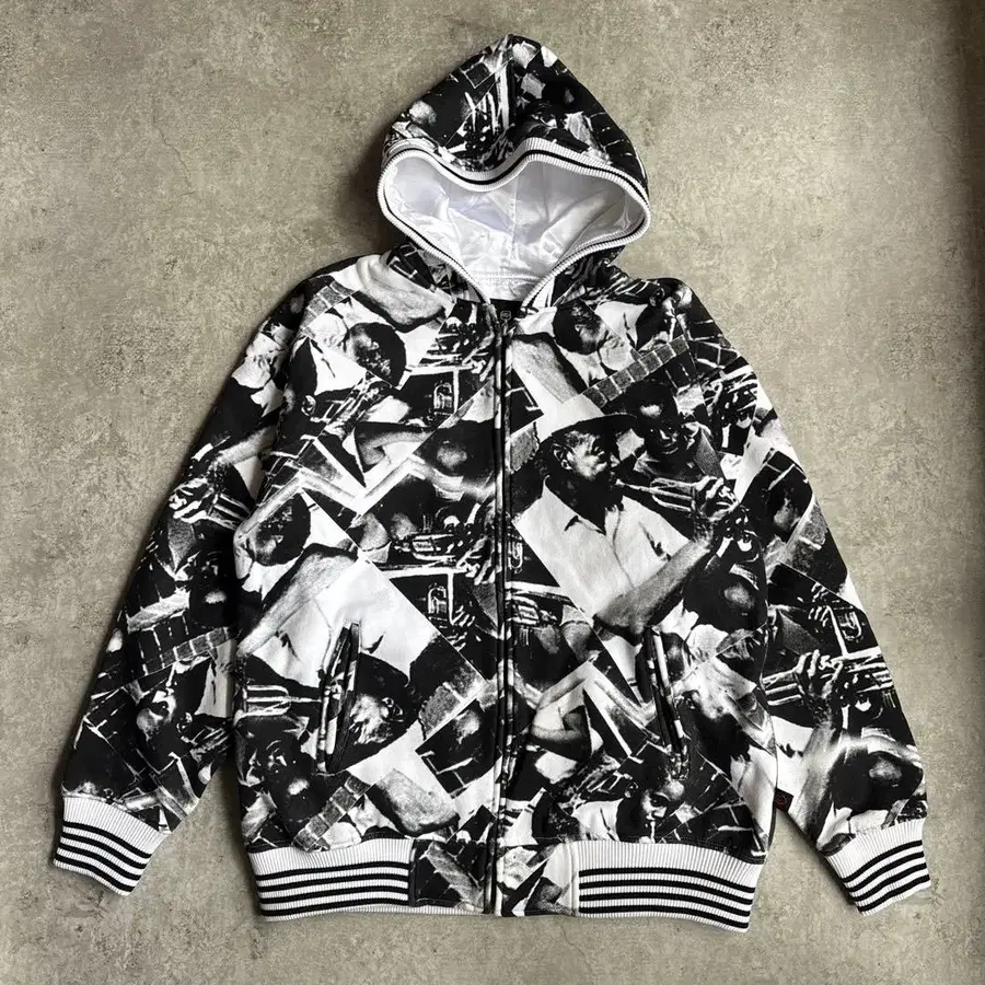 Knockout 빅 사이즈 사진 프린트 올 패턴 집업 후드티 L