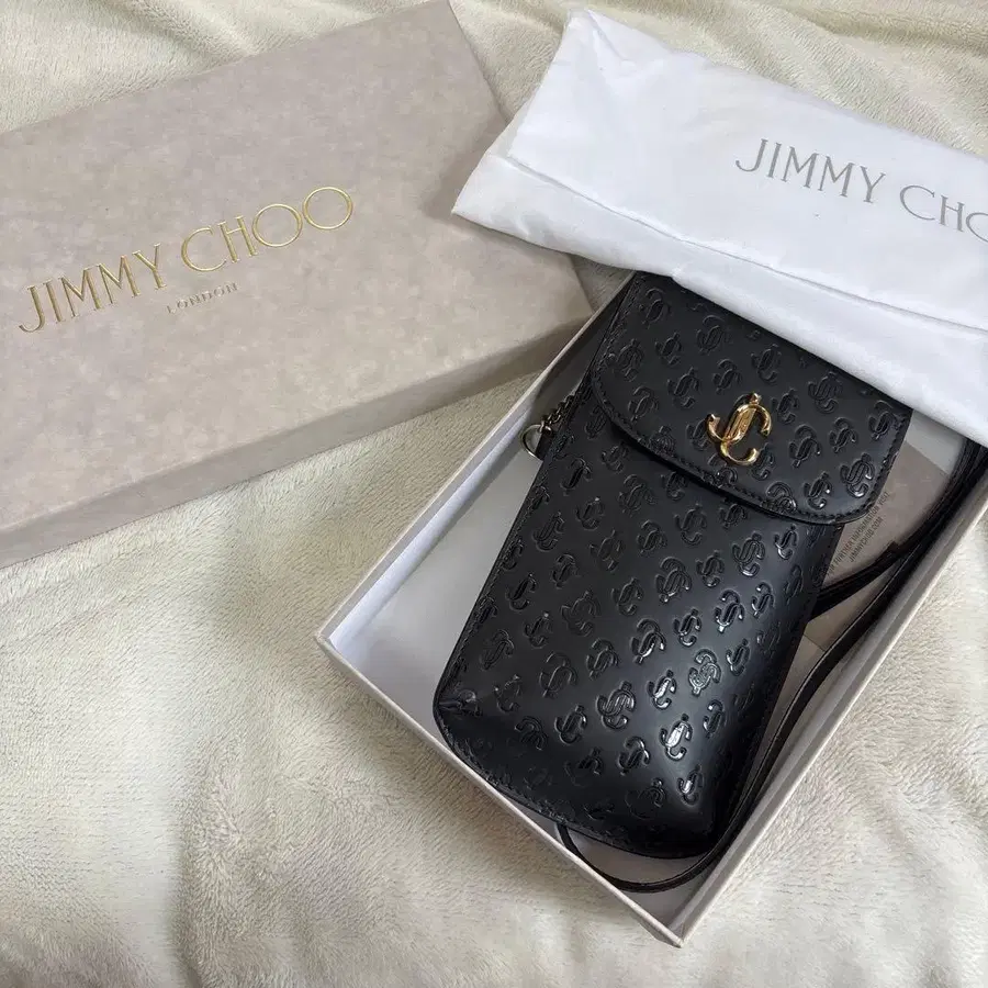 JIMMY CHOO 블랙 가죽 스마트폰 숄더백