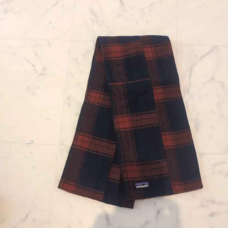 네이비와 오렌지 체크 무늬 오가닉 코튼 머플러. - 브랜드: patagonia - 색상: 네이비/오렌지 - 디자인: 체크 무늬 - 소재: 오가닉 코튼