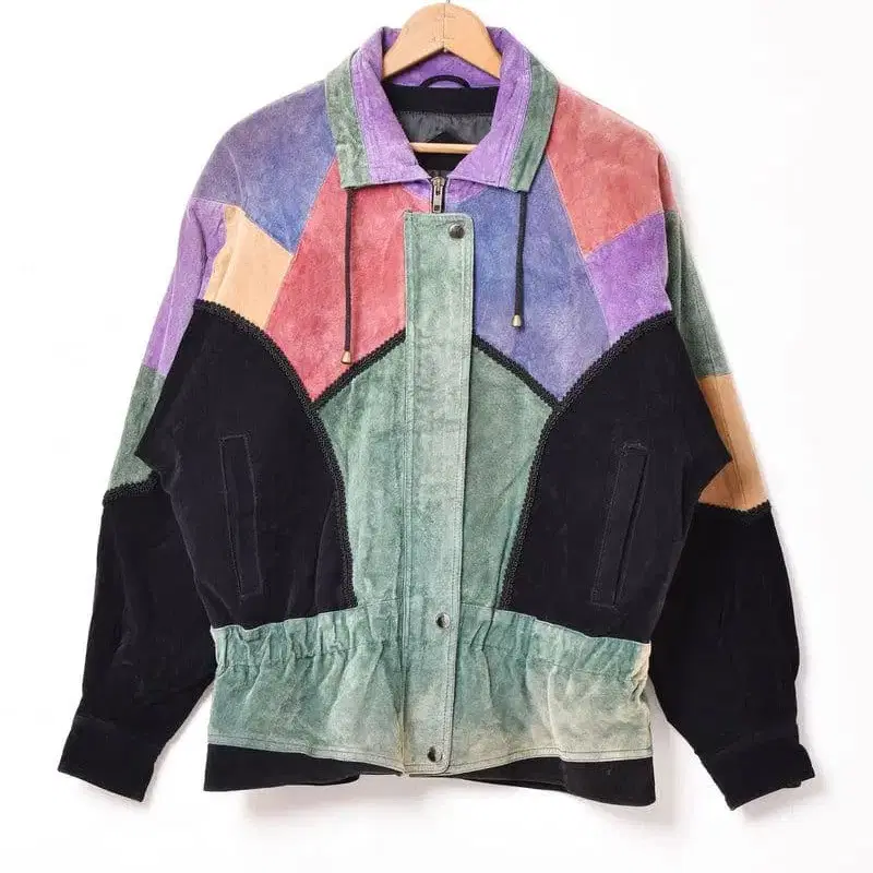 [90S] 멀티 컬러 패치워크 리얼 가죽 자켓 빈티지