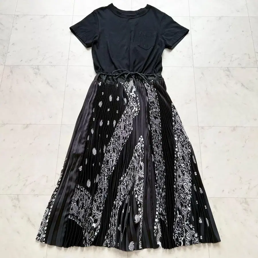sacai Archive 프린트 반다나 플리츠 도킹 원피스