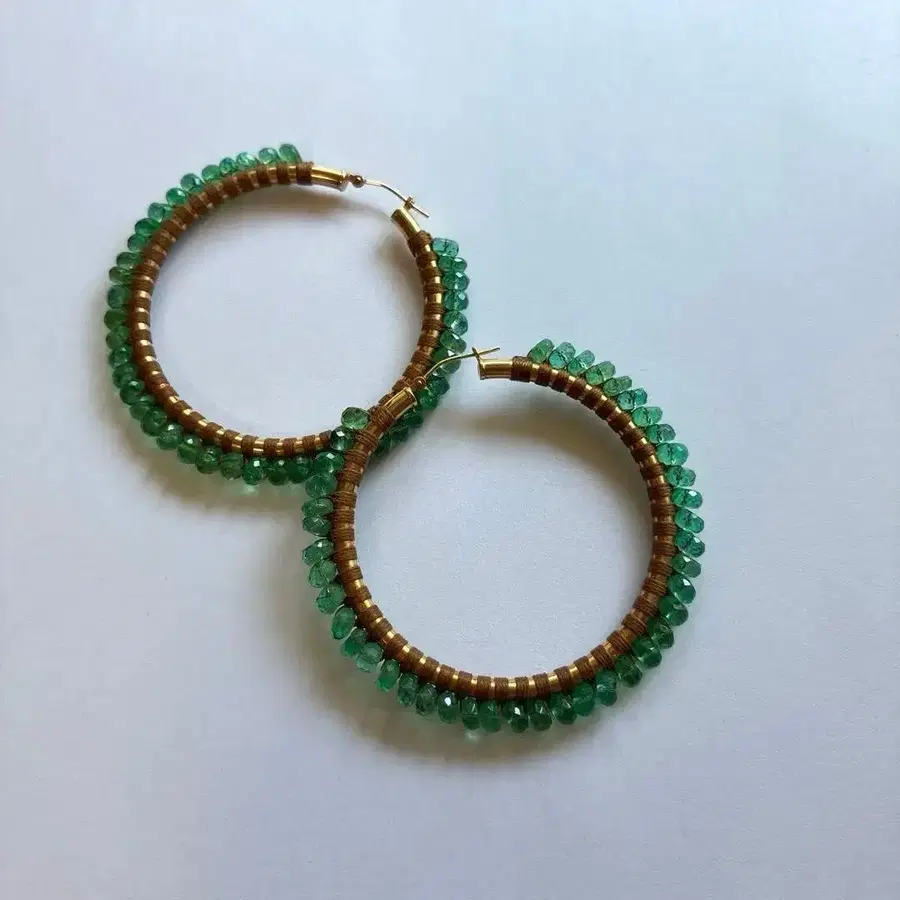 연말 가격! Simon Alcantara 에메랄드 후프 귀걸이