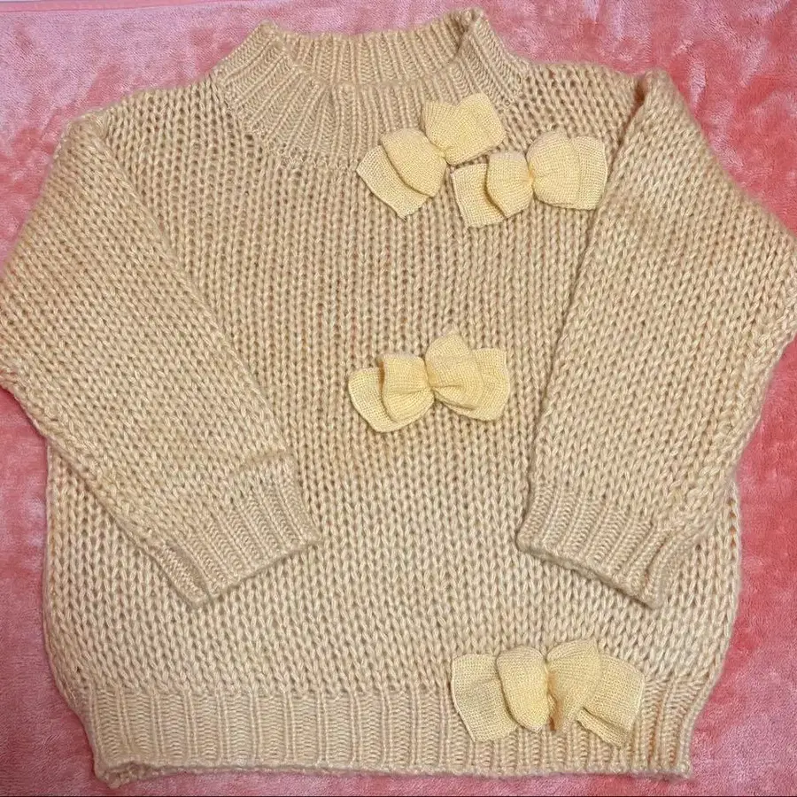 핑크하우스 리본 포함 아이보리 니트 스웨터