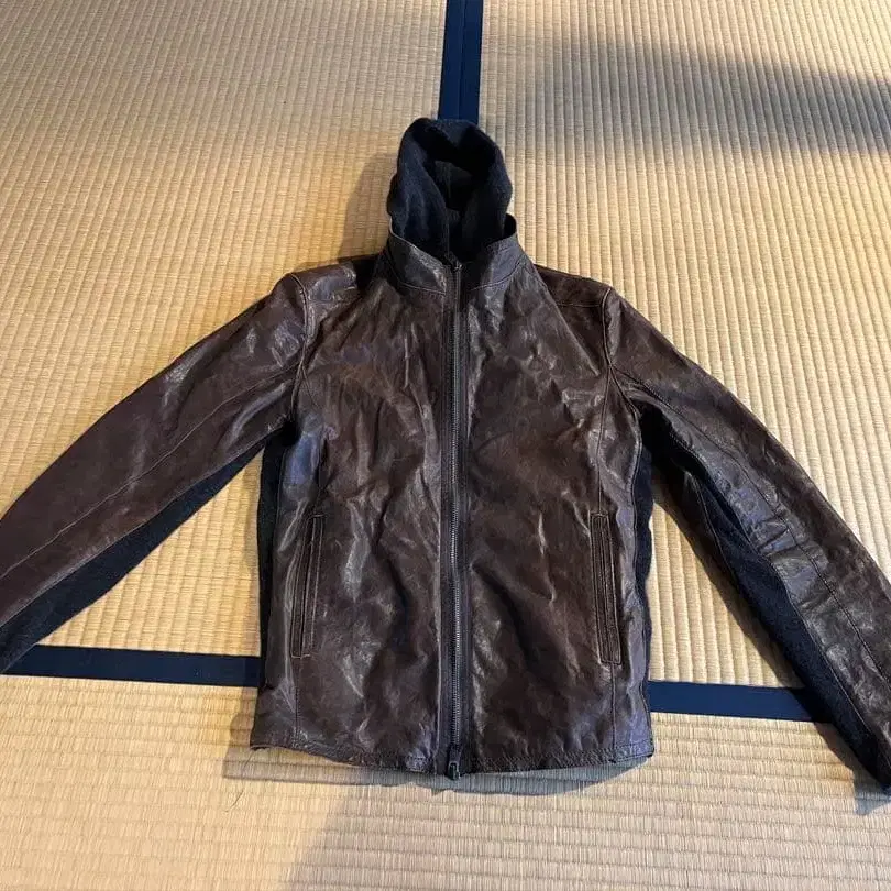 [ 최종 금액입니다 ] 브라운 가죽 후드 부착 자켓