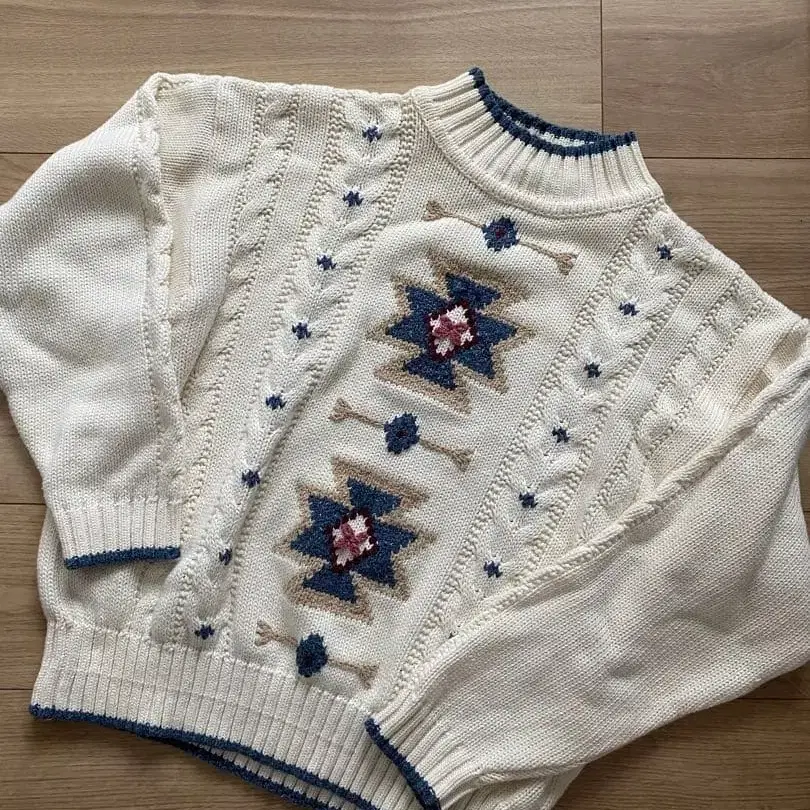 90s usa 빈티지 핸드 니트 디자인 스웨터 레어 코튼