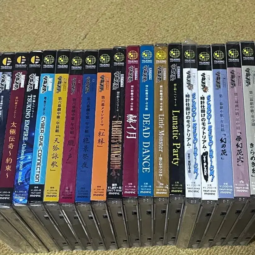제2막 ~ 제10막까지의 메인 테마, 극중 노래 CD입니다. 한 번 재생 후 필름으로 되돌려 보관하고 있습니다. (제8막 ~ 제10막은 미개봉입니다) 모두 오비 포함입니다. 제2막 꿈꾸는 풀꽃 제3막 SCHOOL REVOLUSHON 제4막 Lunatic Party 제5막 RABBITS KINGDOM 제6막 붉은 인연 제7장 CYBER DIVE CONNECTION 제8막 TSUKINO EMPIRE 제9막 행복 찾기 제10막 태극 전기 낱개 판매 ❌ 가격 인하 △