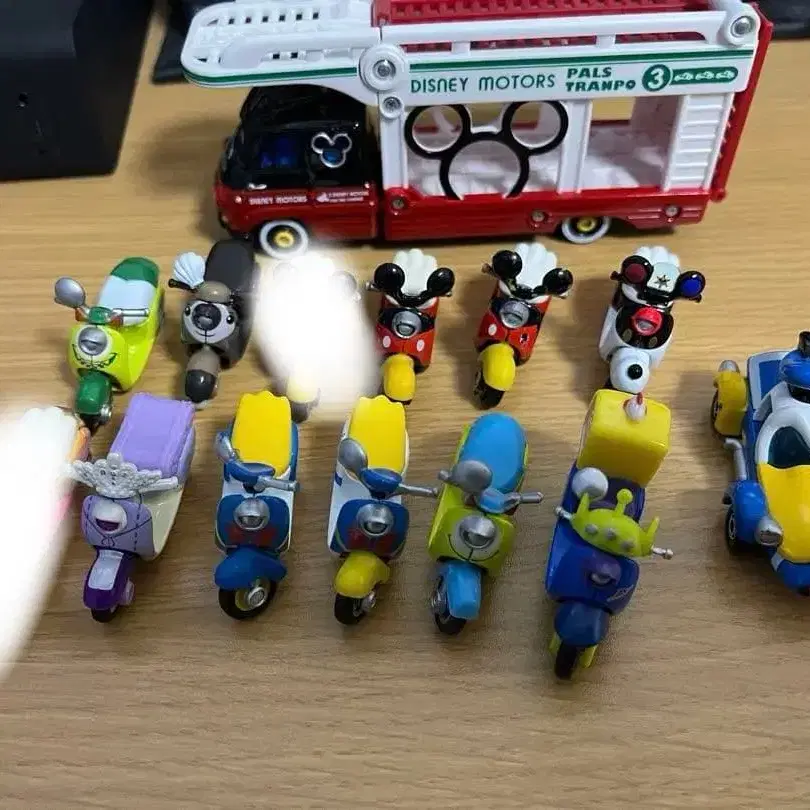 디즈니 미니카 세트, 버스 포함, 컬러풀한 디자인. 팀팀, 도날드의 디즈니 미니카 토미카, 미키의 팔즈 트랜스포트의 묶음 판매입니다.