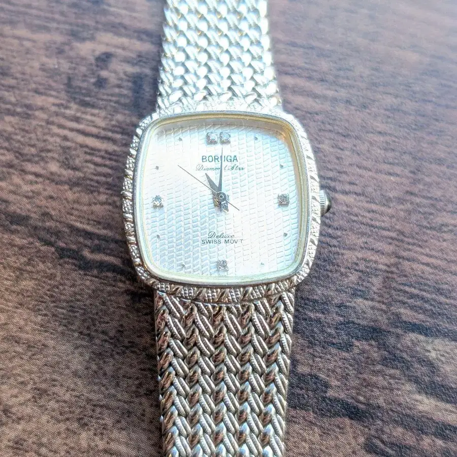 BORUGA 손목시계 쿼츠 빈티지 실버 다이아몬드 스타 새상품급