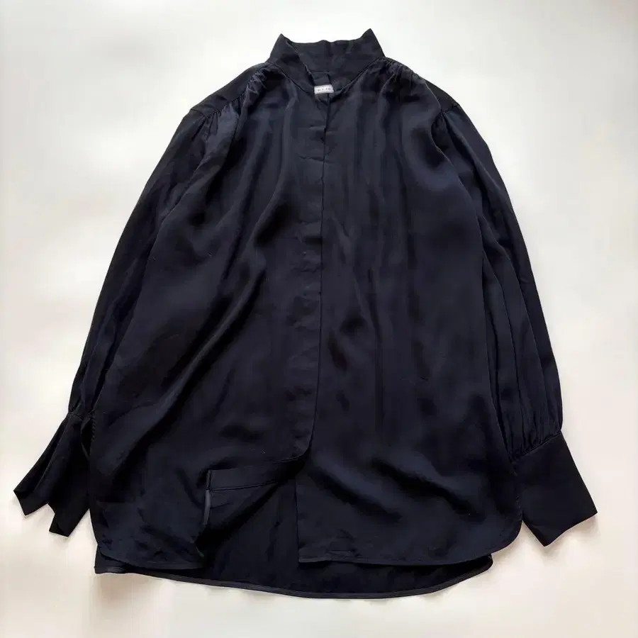 베이지 긴팔 블라우스 큐프라 100% 네이비 하이컷 칼라 2023