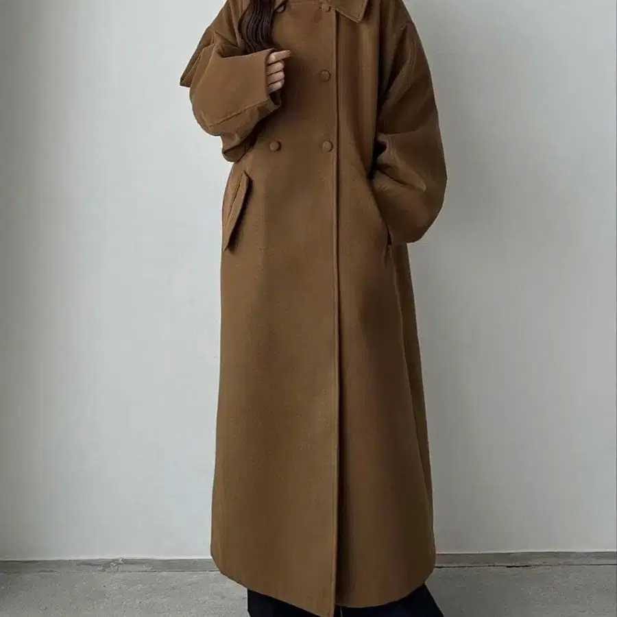 브라운 더블 브레스트 오버 사이즈 롱 코트