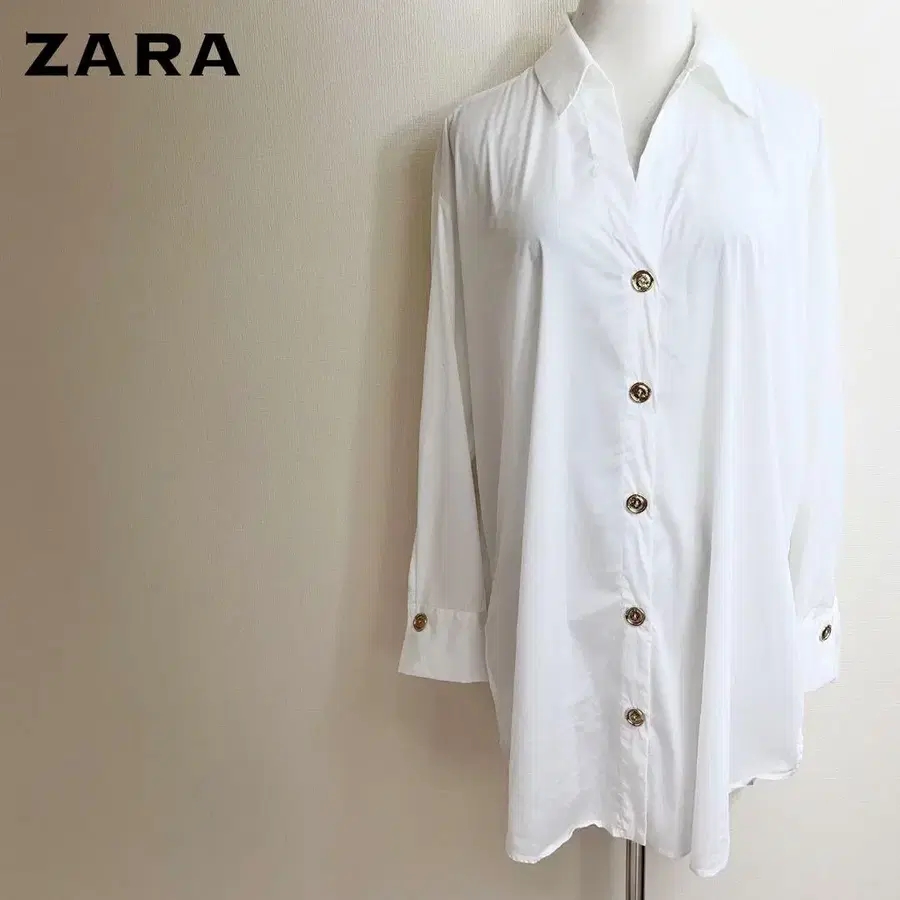 ZARA 자라 롱 셔츠 화이트 골드 버튼 튜닉 겉옷